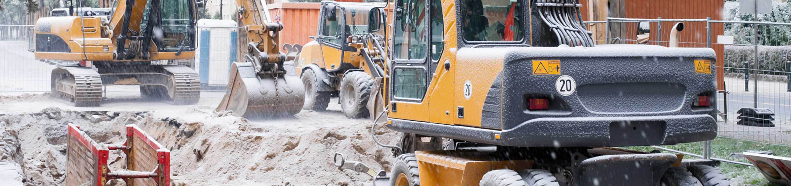 Bei extremen Minusgraden sollten Arbeiten in Zwangshaltung vermieden und regelmäßige Aufwärmpausen eingeplant werden. Zudem müssen alle Baustellenfahrzeuge winterfit sein (Winterreifen, Frostschutz, Schneeketten).